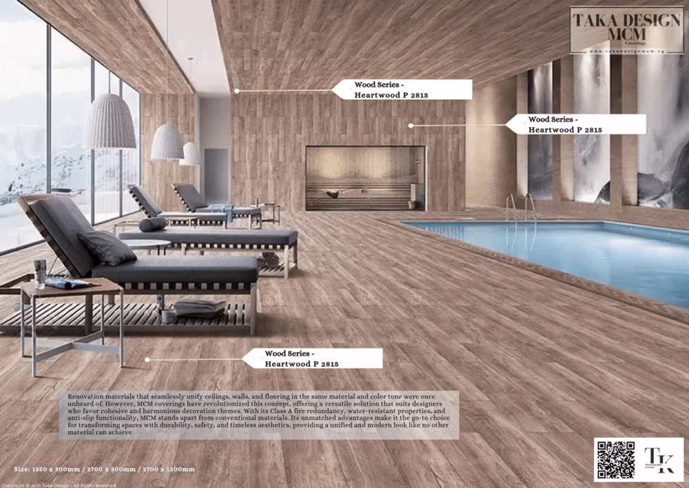 At its core, MCM is an eco-conscious material born from inorganic solid waste. Leveraging digital technology, MCM Covering authentically replicates the textures of natural stone, wood, concrete, and ceramics, merging traditional aesthetics with modern innovation. With an extensive palette of colors, textures, and finishes, it provides endless creative possibilities for replacing traditional building materials such as tiles. Whether you are designing a modern home, renovating a commercial space, or enhancing an exterior facade, MCM Covering delivers a flexible, stylish, and inherently sustainable solution for any project as a preferred environmentally friendly product with recycled and sustainable content, certified by the Singapore Environment Council under the SGLS Certification.